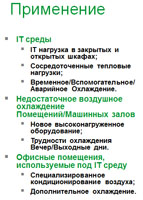 Преимущества: Внутрирядная система InRow втягивает воздух непосредственно из горячего прохода, что обеспечивает InRow высокоэффективный теплообмен благодаря большой разнице температур. Затем воздух комнатной температуры может подводиться непосредственно к охлаждаемым обслуживающим устройствам. Это увеличивает энергетическую эффективность, позволяя оборудованию работать с более высокой температурой выходящей воды. Размещение охлаждающего блока в ряду позволяет ему функционировать с большей эффективностью при более высокой температуре воздуха, обеспечивая максимальную мощность. Таким образом, значительно снижается необходимость увлажнения. Еще одним преимуществом внутрирядной архитектуры является возможность герметизации горячего коридора. Герметизация горячего коридора снижает риск смешения потоков горячего и холодного воздуха. Это обеспечивает соответствие мощности охлаждения тепловой нагрузке компьютерного оборудования. Рассмотрим модельный ряд кондиционеров APC. Portable Cooling - мобильные кондиционеры. Компактные портативные решения для локального управления температурным режимом в небольших помещениях общей холодопроизводительность до 3,5 кВт.