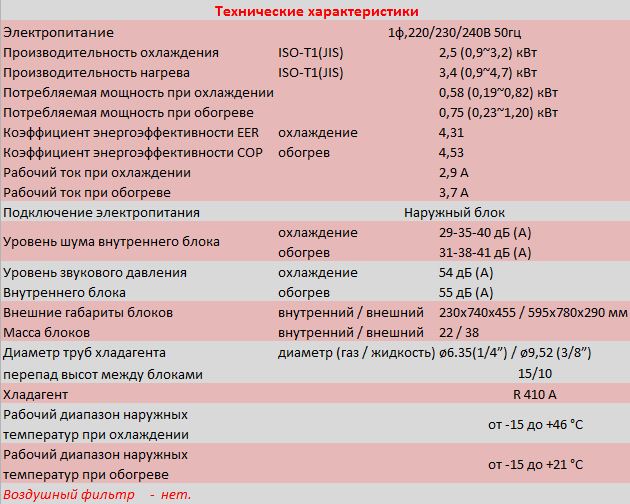 • Работа в режиме охлаждения до -15°С, в режиме обогрева до -20°С