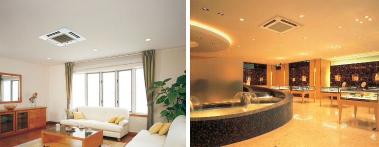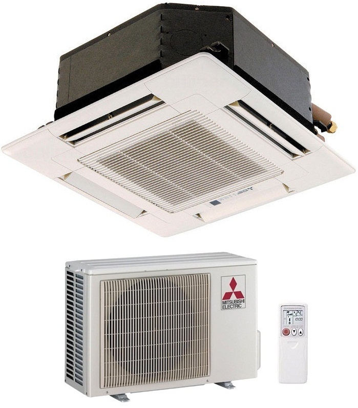 Кассетные сплит-системы представляют из себя идеальное решение для кондиционирования воздуха в больших помещениях с подвесными потолками, например, офисах с высокой концентрацией рабочих мест, актовых залах, торговых отделах, ресторанах и т.п. где важно, что бы потоки холодного воздуха из кондиционеров не попадали на людей. Максимальный комфорт обеспечивается при установке кассетного блока в центре помещения, поскольку кондиционер оптимально распределяет потоки воздуха по четырем направлениям. Эти кондиционеры как и обычные сплит-системы состоят из внутреннего и внешних блоков. Основное достоинство кассетного кондиционера - незаметность, поскольку прибор имеет компактный дизайн для монтажа в ячейки подвесного потолка и видна только декоративная решетка. Помимо этого приборы автоматически регулируют мощность охлаждения в помещении: потребляемая мощность снижается, когда температура в помещении приближается к желаемой.