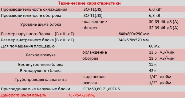Работа в режиме охлаждения до -15°С, в режиме обогрева до -20°С.
