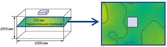 Проведены замеры распределения температуры воздуха при использовании кассетного 4-поточного кондиционера Toshiba MMU-AP0182H с пультом управления RBC-U31PG(W)-E. Высота помещения составляла 2 м, длина 6,3 м, температура замерялась на расстоянии 75 см от потолка. Воздух подавался внутренним блоком Toshiba SMMS равномерно по всем четырем направлениям. Измерения показали, что температура распределяется исключительно равномерно, по сравнению с другими моделями кассетных кондиционеров.