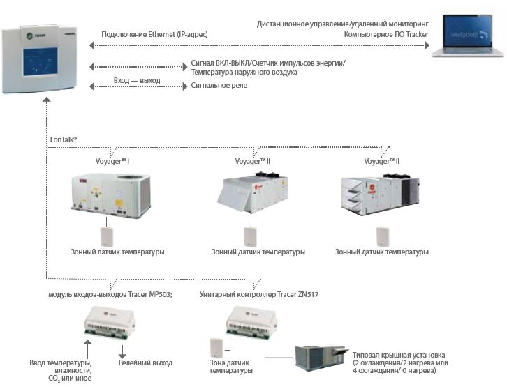Контроль и управление до 12 крышных установок с помощью одного Tracker™