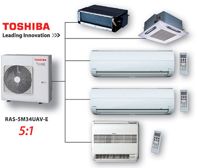Применяя мультисплит-системы Toshiba вы не испортите внешний вид здания. Снизите "стоимость обладания" системой кондиционирования, т.к. обслужить потребуется лишь один внешний блок, а не 2-3-4-5 отдельно стоящих (зачастую труднодоступных) наружных агрегата!
