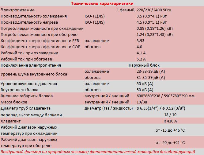 • Работа в режиме охлаждения до -15°С, в режиме обогрева до -20°С.