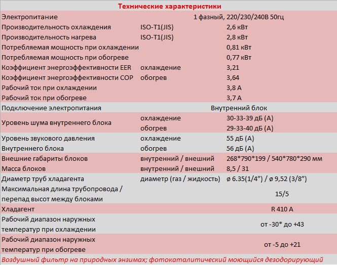 • Работа на охлаждение до -30°С  -   при условии установки зимнего комплекта.