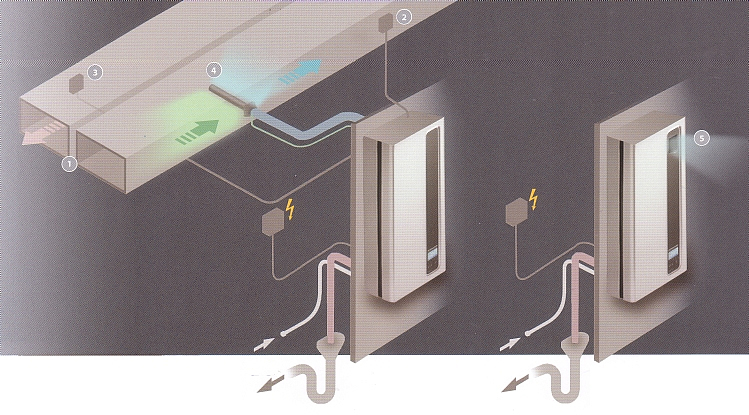 Модель NORDMANN DC распределяет пар через шланг и распределительную трубку напрямую в воздуховод. NORDMANN RC со встроенным вентилятором гарантирует прекрасное распределение пара по всему помещению. Направление распределения пара можно контролировать с помощью жалюзи.