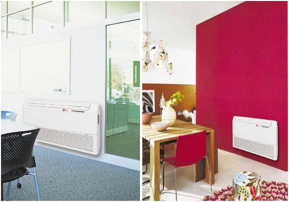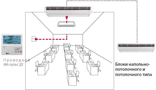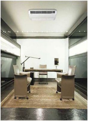 Блоки напольно-потолочного типа могут быть установлены как горизонтально под потолком , так и вертикально на стене или на полу. Таким образом, можно сэкономить пространство помещения при монтаже этих блоков в магазине или офисе.