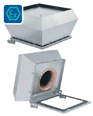 Вентиляторы DVEX имеют рабочие колеса с загнутыми вперед лопатками и двигатели с внешним ротором. Корпус из алюминия, несущая рама из оцинкованной листовой стали, медный входной патрубок. Для защиты от перегрева двигатели вентиляторов оснащены термоконтактами. К выводам обязательно должно быть подключено устройство термозащиты U-EK230E EX.